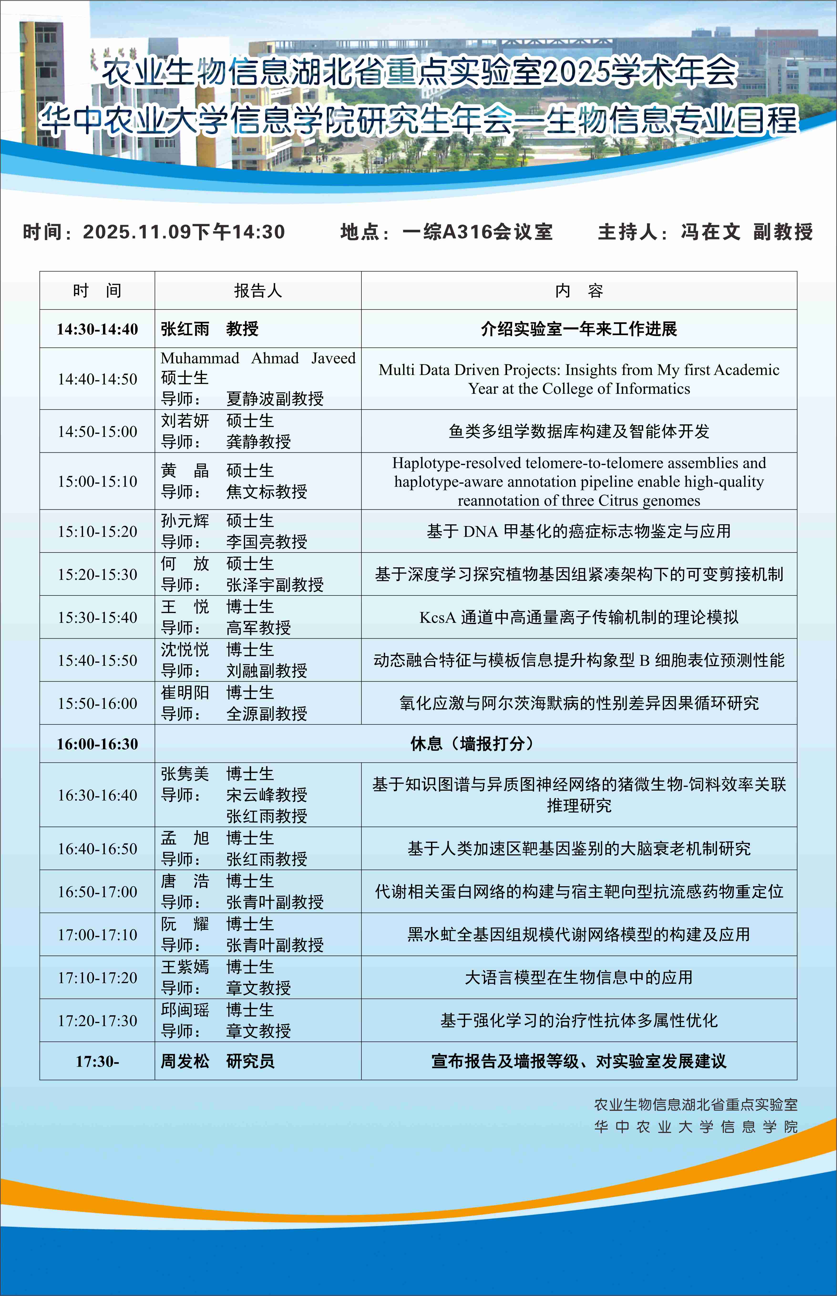 报告题目:农业生物信息湖北省重点实验室2025学术年会