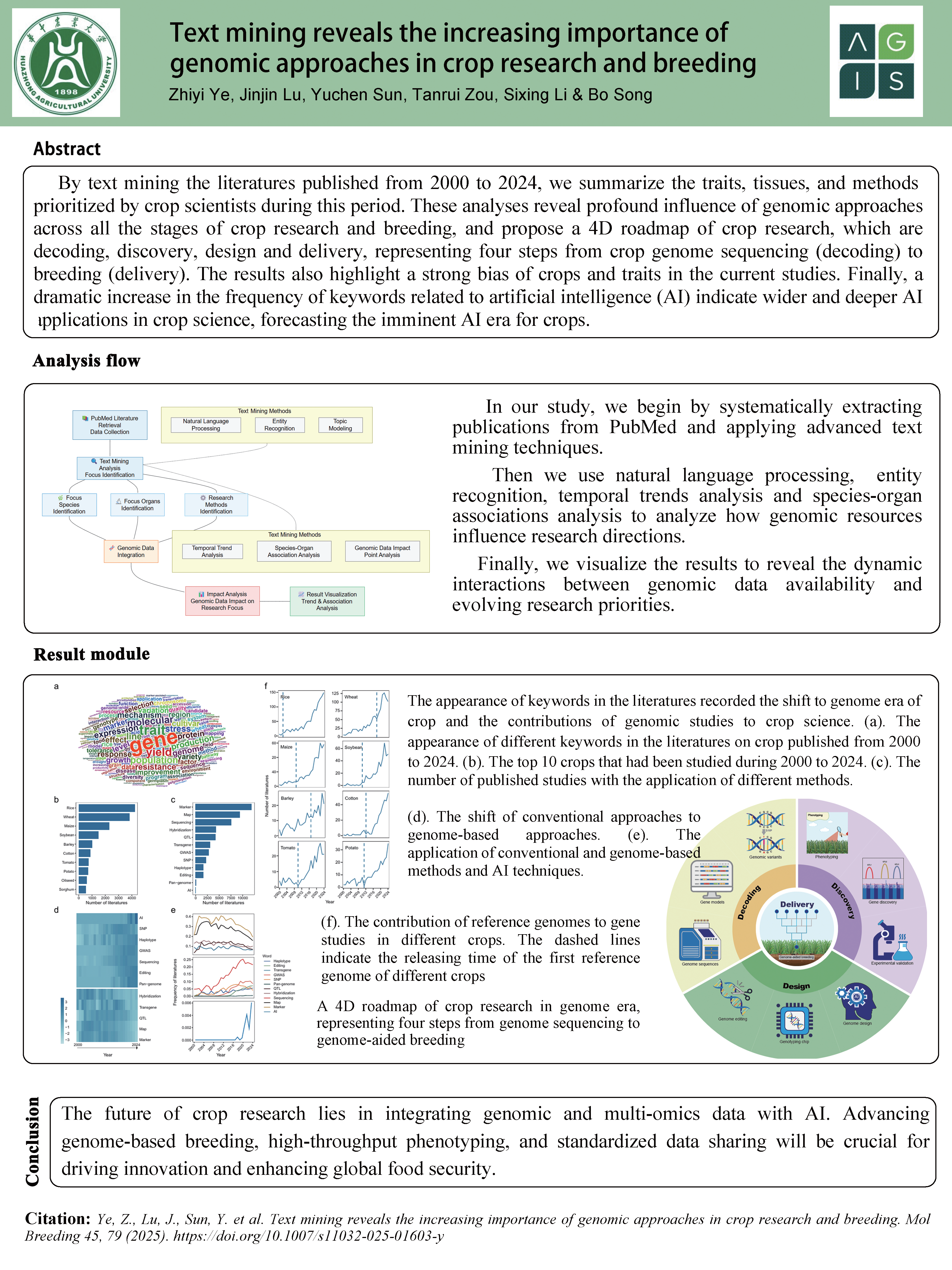 实验室研究工作的定位是以应用基础研究为主、并向基础与应用研究延伸。本实验室将以我省主要作物、畜禽及相关致病微生物的基因组、转录组、蛋白质组、代谢组和表型组为研究对象,瞄准学科前沿将各种“组学”技术与信息技术相结合,分别从多组学数据挖掘、生物系统模拟与药物发现、表型组分析与设计育种和生物信息算法开发四个方面开展全方位的研究,深入解读各种“组学”产生的海量生物学数据,为动植物育种、种质资源保护、农业病虫害监测和防治提供新理论、新技术和新方法,为确保我省乃至周边省份的粮食安全做出贡献。